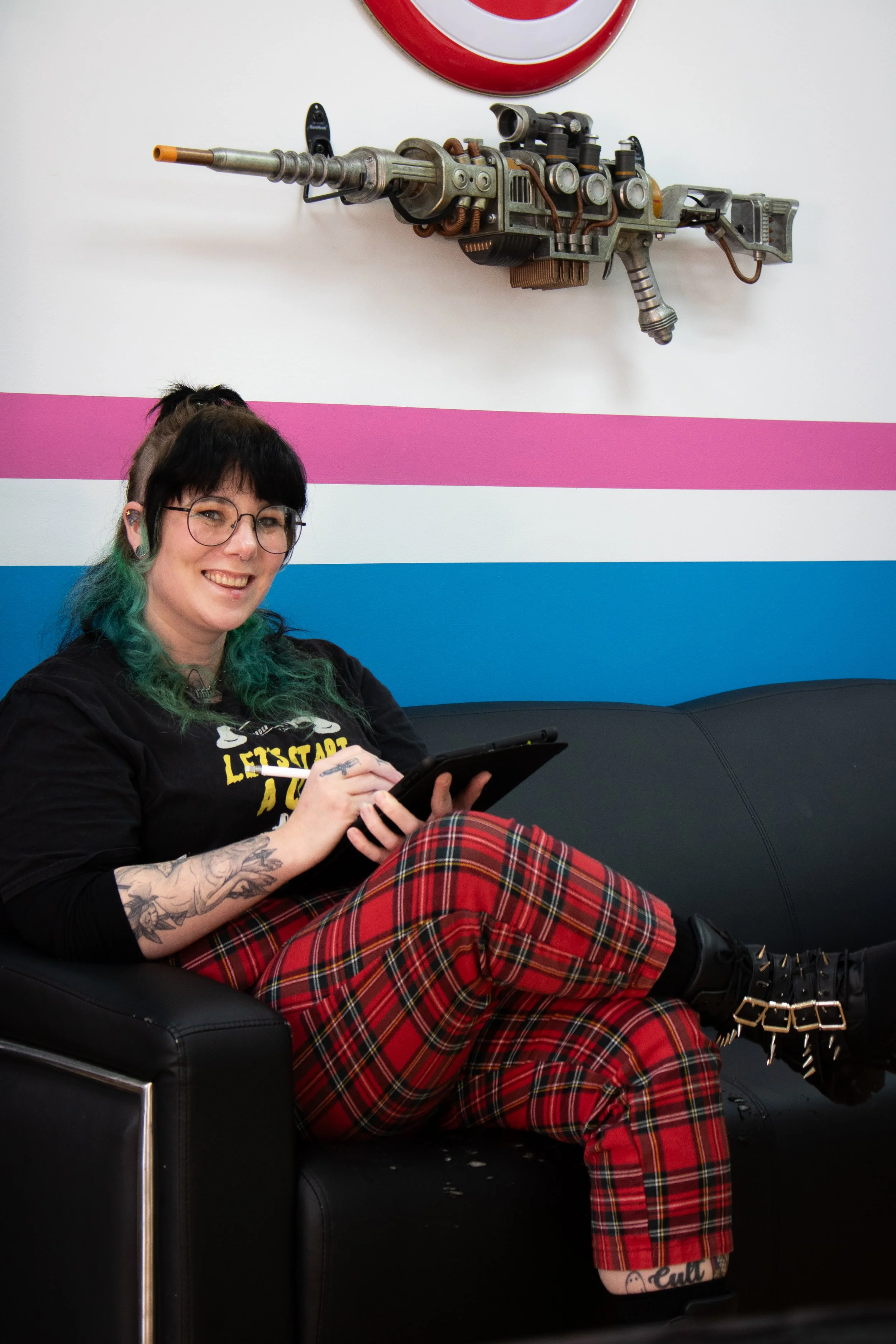 A nostalgic kid at heart, Georgie loves to bring aspects of the 80’s and 90’s into her tattoos, obsessed with bold colours and retro vibes, and she lives her life by the motto: